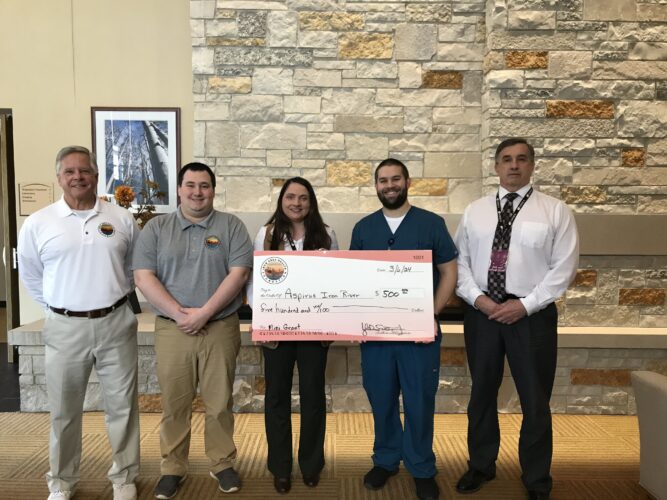 The Iron Area Health Foundation recently awarded a $500 mini grant to Aspirus Iron River for the purchase of gas cards for help with medical transportation costs for homeless patients. From left are Lyle Smithson Jr., IAHF director; Zach Hautala, IAHF board member; Taylor Taylor, Aspirus Iron ...