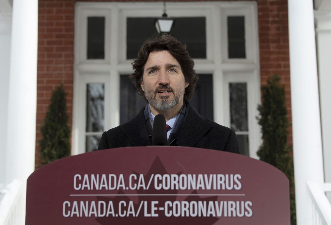 Canadian Prime Minister Justin Trudeau delivers his opening remarks at a news conference outside Rideau cottage in Ottawa, Ontario, on Tuesday. Adrian Wyld/The Canadian Press via AP