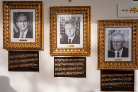 Republican George H.W. Bush, who died during Trump’s first term, is recognized for his lengthy resume before becoming president, along with legislation including the Clean Air Act and Americans With Disabilities Act — despite Trump’s administration relaxing enforcement of both. The elder Bush’s plaque does not note that he, not Clinton, first pushed the major trade law that became NAFTA.