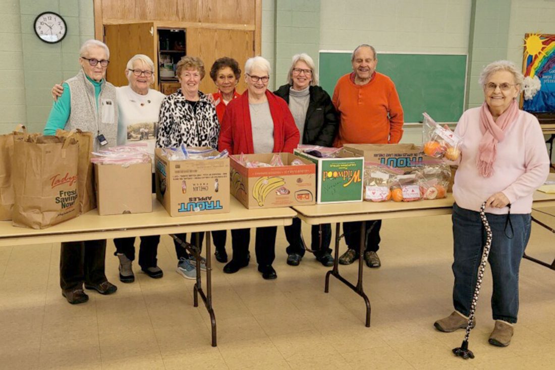Golden K members met Monday to pack Valentine’s Day bags for special needs kids. The volunteers made up 90 bags that included candy, chocolates, oranges, apples and valentine cards. The special gifts were delivered to Woodland Elementary in Kingsford; Florence, Wis.; Crystal Falls; Niagara, Wis.; Iron Mountain; Norway; and Iron County schools. Golden K member Bill Roberts coordinated the buying and delivering. Due to COVID-19, the group decided this was the best way to celebrate Valentine’s Day for the special kids this year. Members who helped with the gifts are, from left, Sharon Scholke, Jeanine Polkinghorn, Diane Aune, Dorleen Uhazie, Sue Proudfit, Kathy Jo Anderson, Joe Santiago and Orice Walters. The Monday meeting will feature public relations manager Joe Rizzo of Marshfield Clinic Health System – Dickinson, who will speak about the new Marshfield clinic in Iron Mountain. The Golden K meeting will start at 10 a.m. at the Presbyterian Church in Kingsford. All are welcome.