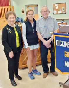 Dorleen Uhazie introduced guest speaker Cathy Lundy from Bianco’s Fitness Center. She attended Iron Mountain and Northern Michigan University. Lundy has been involved in the fitness industry her entire life. She began her work in high school for Community Schools teaching gymnastics. She coached and judged gymnastics for many years at the high school level. She received certification to teach fitness classes and personal training about 25 years ago. She has worked at Bianco’s Center since they opened. She and her husband Paul have three children and five grandchildren.