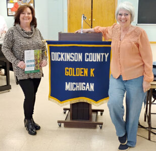 Alyce Derwinski on piano and her multi-talented assistant, Richard Ochoa, lead the singers. The room fills with music and smiles. Next on the agenda is the “Welcome Song” for guest speaker Tamara Juul, executive director of the Dickinson Area Community Foundation. Paul Larson received a warm welcome after a long winter away. He is involved with the Hermansville Museum, which is on the register of National Historic Places taking one back to the logging industry in 1882.