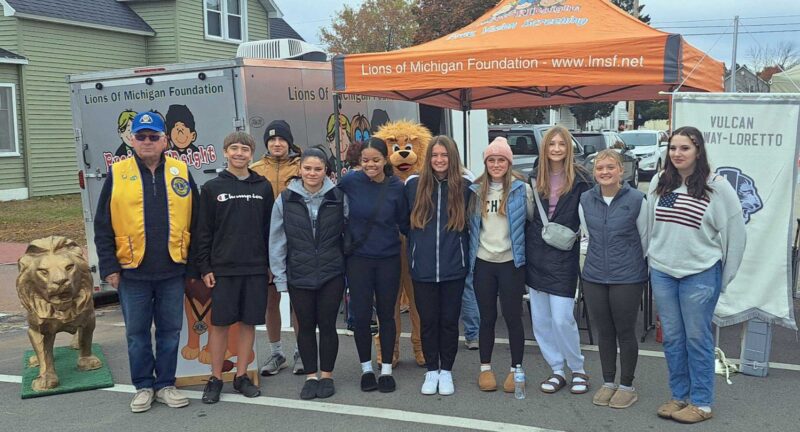 The Norway High School LEO Club members helped the Vulcan-Norway-Loretto Lions Club in selling food, assisting the childhood vision screenings and walking in the parade during the Leif Erikson Festival events Oct. 12. From left are Ron Henriksen, Lions Club president; and students Matthew ...