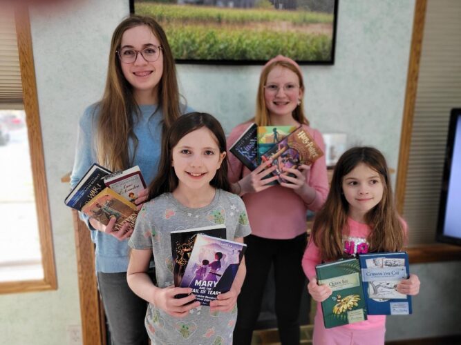 The Kreh girls — in back are Kristina and Nicole, in front are Alexandra and Daniella — have books ready for Iron Mountain-Kingsford General Federation of Women’s Clubs book collection and book sale that starts Thursday at the Midtown Mall in Iron Mountain. GFWC will accept donations of ...