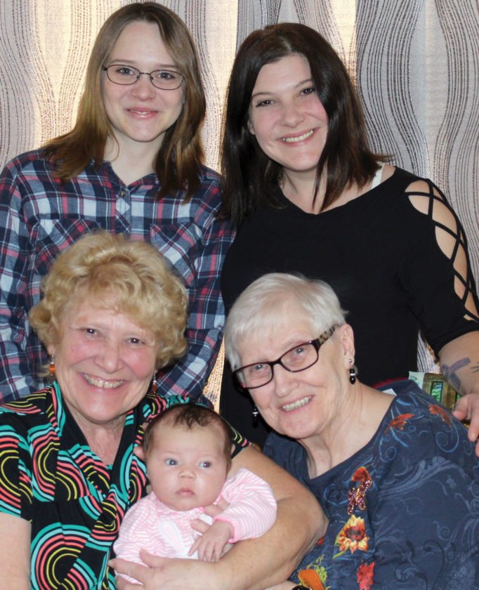 Five generations of women recently gathered for this special photo after the birth of Mabel Rose Pollock on Oct. 21 at Dickinson County Memorial Hospital in Iron Mountain. In front, from left, are great-grandmother Kathy Peterson of Iron Mountain holding her great-granddaughter, Mabel, and great-great grandmother Pat Ellis of Kingsford; in back are mother Savahnna Pollock of Iron Mountain and grandmother Rebecca Peterson of Iron Mountain.