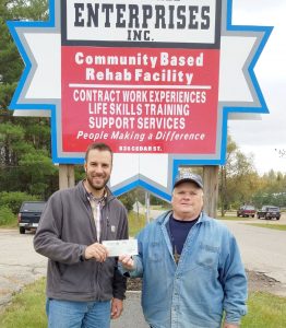 - The Knights also made a donation to Wausaukee Enterprises Inc., which assists developmentally disabled individuals in Marinette County. Accepting the check is Wausaukee Enterprise Inc. Director Steve Tadisch, left, from Niagara Knights member Duane Riehle.