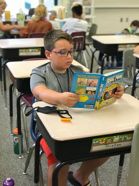 Triston Trevillian chose to read a story during indoor recess. Triston is in Jodi Maycunich’s third grade class at North Elementary School of the Arts in Iron Mountain.