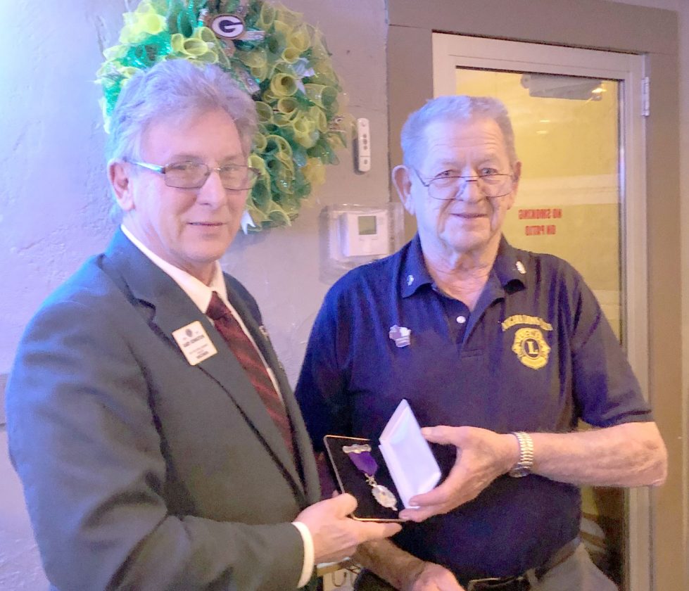 Lions 27 B2 First District Governor Gary Johnston, left, presents Niagara Lion Gerald Kallenbach with the Grand Master Key Award from Lions International. Kallenbach was recognized for having sponsored 50 new members over the years he has been a Lion. He joined the Lions in 1985 and has served for years as an officer of the Niagara Lions in multiple offices while also serving as a zone and regional chairman for the District Lions as well. Kallenbach is the only Niagara Lion to receive this distinguished award representing his outstanding service Lions and the Niagara community.