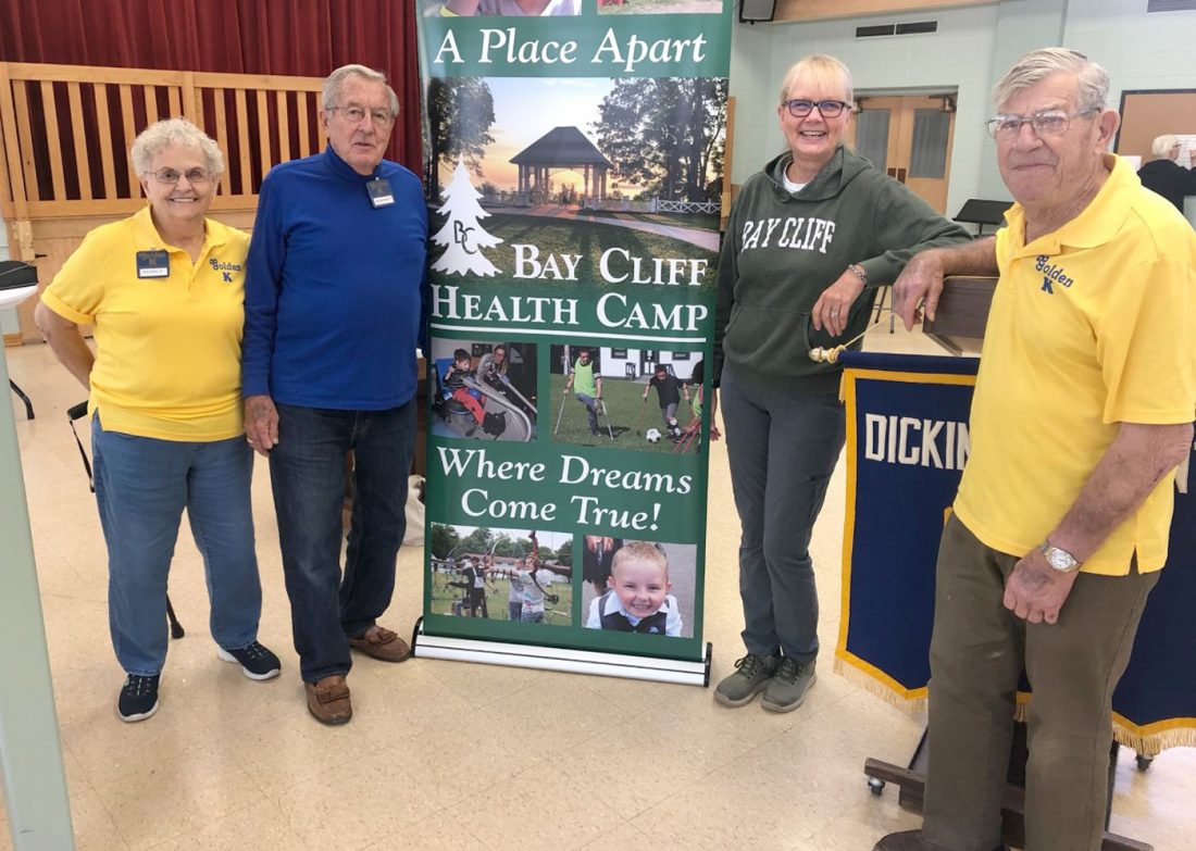 Dr. Paul Jacobs photo The Golden K Club heard a presentation from Clare Lutgen, executive director of the Bay Cliff Health Camp. From left are Orice Walters, program chairwoman; Ben Determan, Golden K chairman for September; Lutgen; and Golden K member Paul Ward. Golden K also donated $300 to the Bay Cliff camp.