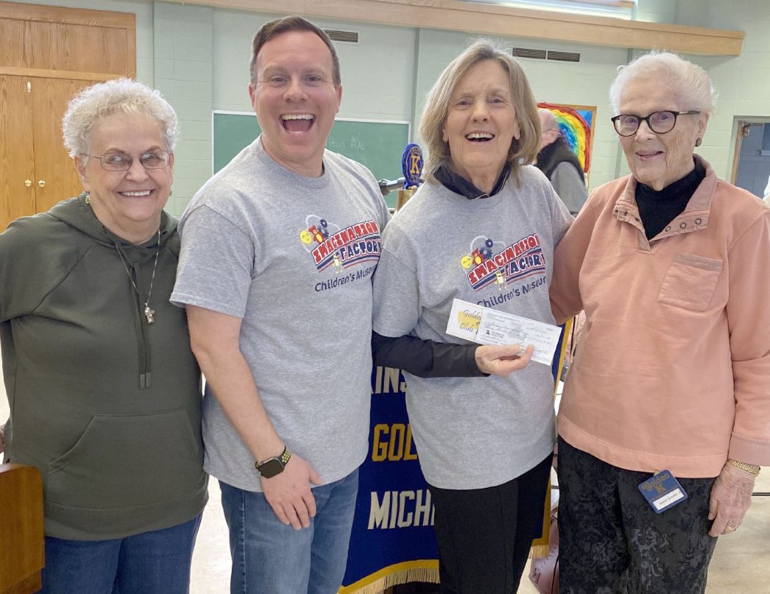 Judy Sielaff photo From left, Golden K April Chairwoman Orice Walters; Jonathan Ringel and Barb Reisner, representing the Imagination Factory Children’s Museum; and Sharon Scholke of Golden K. A $300 donation from the Jim Verrette family was presented to Ringel and Reisner.