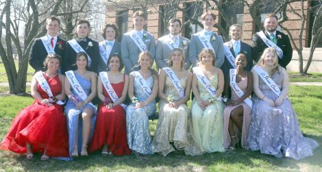 Members of the senior court — from left, in front are Emma Golfis, Kaliyah Kincaid, Kailey Barnes, Jaden McLain, Moriah Alquist, Ella Rovedo and Allyssa Londre; in back are Kurt Adiao-Ryan, Parker Stroud, Kenneth Vincent, Max Jayne, Steven Treiber, Evan Tregillis and Lucas Maxon