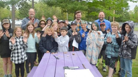 Elementary students, with Brian Diel, Taff and Superintendent Nathaniel Burklund in back. The classes were in Badger Park near the school.
