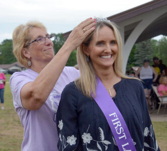 Ann Brasure and Bill Tripp were selected as First Lady of Niagara and Mr. Niagara at the Niagara Lions Club Community Picnic on Saturday in Niagara, Wis. The contest is sponsored by the Niagara Woman’s Civic Club as a fundraiser for community projects. Voting is $1 per vote. Brasure receives her crown from Women’s Club President Deb Lindgren.