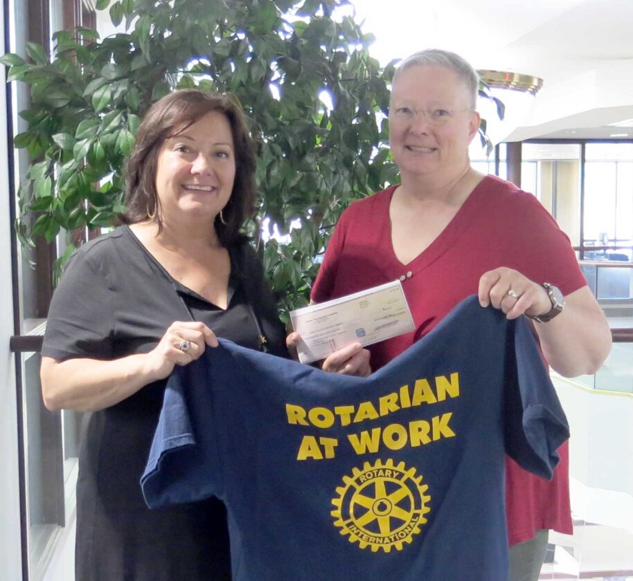 The Dickinson Area Community Foundation recently awarded a $500 Community Impact Grant to the Rotary Club of Iron Mountain-Kingsford. The grant is to purchase T-shirts to be worn while performing local service and volunteerism. These shirts will allow Rotary volunteers to be easily identifiable. This CIG is made possible through a matching grant partnership with the Pasahow Family Fund. Tamara Juul, executive director of the Community Foundation, presented the check to current Rotary Club President Cindy Gustafson. The mission of the community foundation is to improve the quality of life for residents in the region. For more information about available CIG funding or current community needs, contact Juul at 906-774-3131 or go online to www.dickinsonareacf.org.