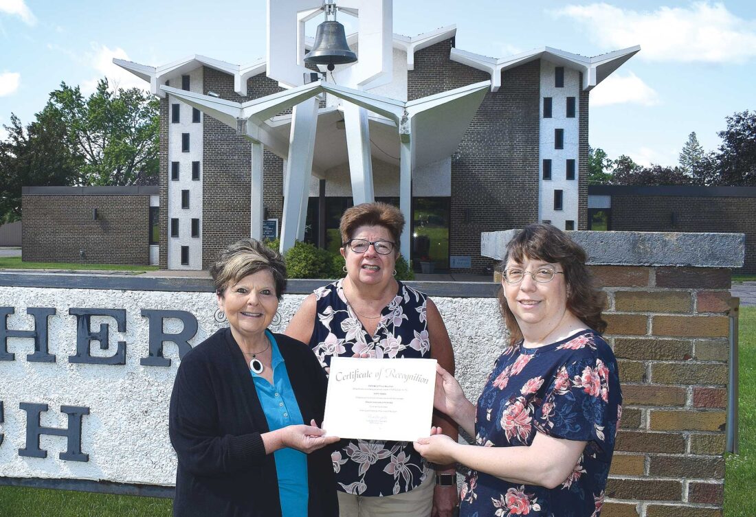 Terri Castelaz/Daily News photo TOPS MI 0277 of Iron Mountain was presented a Certificate of Recognition for its 60th anniversary as a club. The awarded was given by TOPS State Coordinator Sharon McWethy and Area Coordinator Arlette Dubord at the Peter White Library in Marquette. Assistant Weight recorder Lorie Smeester accepted the certificate on behalf of the local chapter. From left are club secretary Donna Fayas-Johnson, acting treasurer Joyce Erickson and Smeester with their certificate. TOPS MI 0277 meets every Wednesday, except holidays, at First Lutheran Church, 1210 S. Stephenson Ave. in Iron Mountain. Weigh-in is from 5 to 5:30 p.m., with the meeting to start at 5:30 p.m. TOPS — which stands for Take Off Pounds Sensibly — is the original, nonprofit weight-loss support and wellness education organization. They have approximately 100,00 members of all gender, from age 7 up, in thousands of chapters across the United States. TOPS promotes successful weight management with a “Real People. Real Weight Loss” philosophy that combines accountability and support from others at weekly chapter meetings, promoting healthy eating, portion control, regular exercise and wellness information. For more information, contact Fayas-Johnson at 906-396-0692 or attend a meeting.