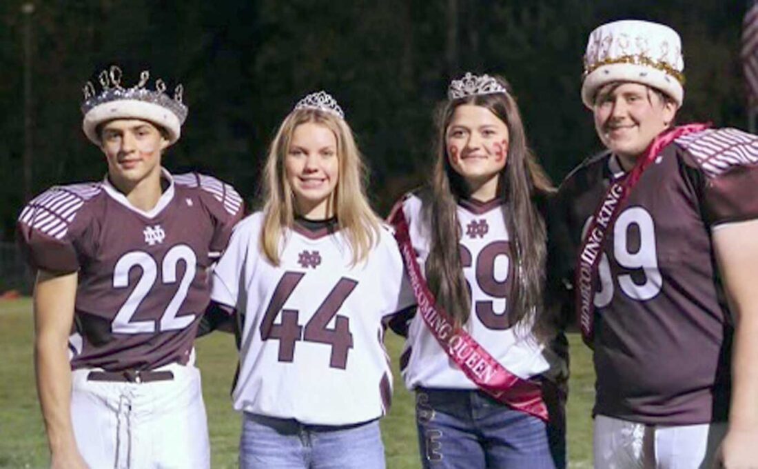 North Dickinson High School held its Homecoming on Sept. 30. The theme was “Holidays.” Students had a blast celebrating different holiday theme days during the week. Along with celebrating the royalty at halftime of the game, each class showed off the homecoming floats that they worked on all week. Homecoming royalty included, from left, Prince, Wyatt Glasheen; Princess, Mya Grunlund; Queen, Aiden Hord; King, Matthew Steinbrecher.