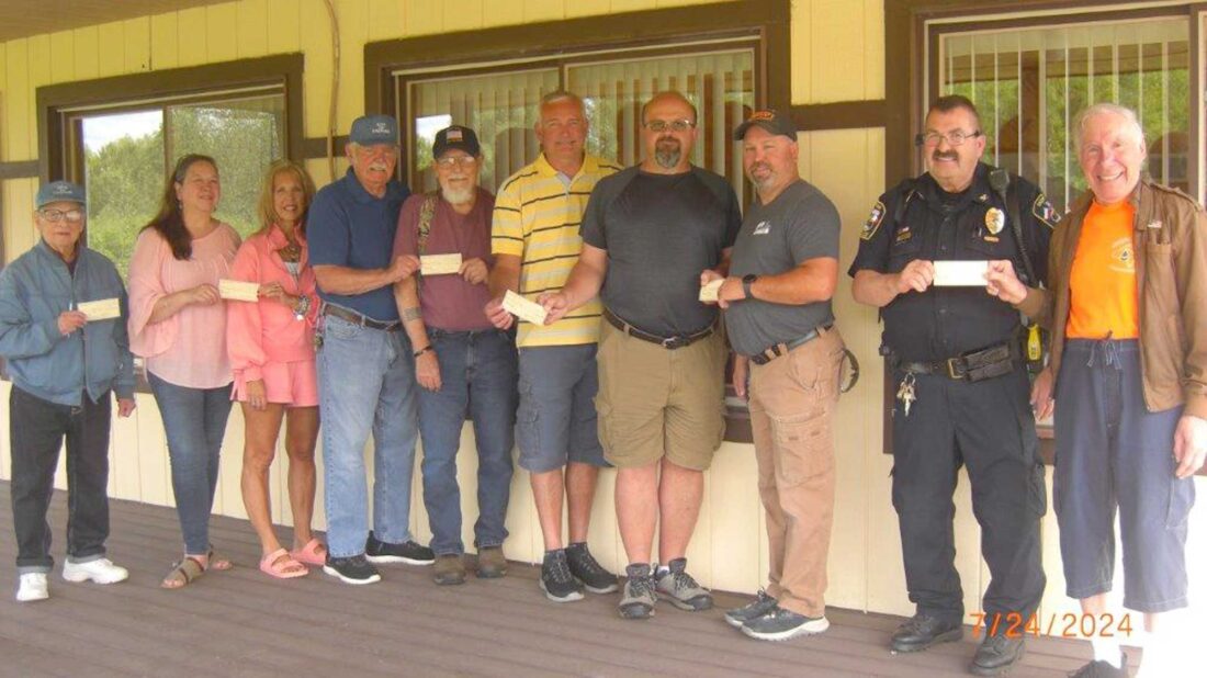 The Caspian Progressive Men recently presented donations to a number of community organizations. From left, Secretary-Treasurer Art Aregoni presents $320 for The Duke Of Abruzzi Building Restoration Fund and $100 to Kathi Long, director of the Iron County Historical Museum and Museum Volunteer Denise Maloney; member Robert Remondini presents $100 to Michael Peterson, representing The West Side Veterans Fireworks Program; Caspian City Manager John Stokoski receives $500 from President Mark Stauber, as Stauber also presents $100 to Caspian-Gaastra Fire Chief Mat Jacks for the annual children’s party; and Caspian Police Chief Terry Post receives $500 from member James Paul for the city K-9 program. The Caspian Progressive Men challenges any donor to consider donating to the Duke of Abruzzi Building Restoration Fund, which is currently in the process of restoring the century-old building. The public should consider patronizing the Duke’s annual summer rummage sale Thursday to Saturday. Interested parties may contact Art Aregoni at 906-265-3730. The Progressive Men would like to thank the public for supporting the organization, along with the Iron County Golden K Gifts from Santa raffle and placemat projects, which the Progressive Men participate in. The Caspian Progressive Men, a non-profit corporation since 1968, continually endeavors to assist the City of Caspian as well as any other worthy cause in the community.