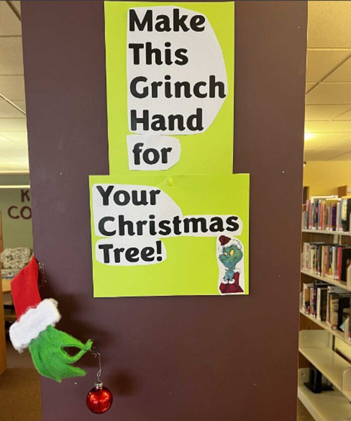 The public is invited to the Crystal Falls District Community Library at 6 p.m. Tuesday to make this “Grinch hand” for their tree or wall. The event is this month’s Crafting with Marissa class. The classes take place at 6 p.m. on the second Tuesday of each month from September through May. The class is free and materials are provided. The library is at 237 Superior Ave. in downtown Crystal Falls. For more information, call or email library Director Evelyn Gathu at 906-875-3344 or egathu@crystalfallslibrary.org.