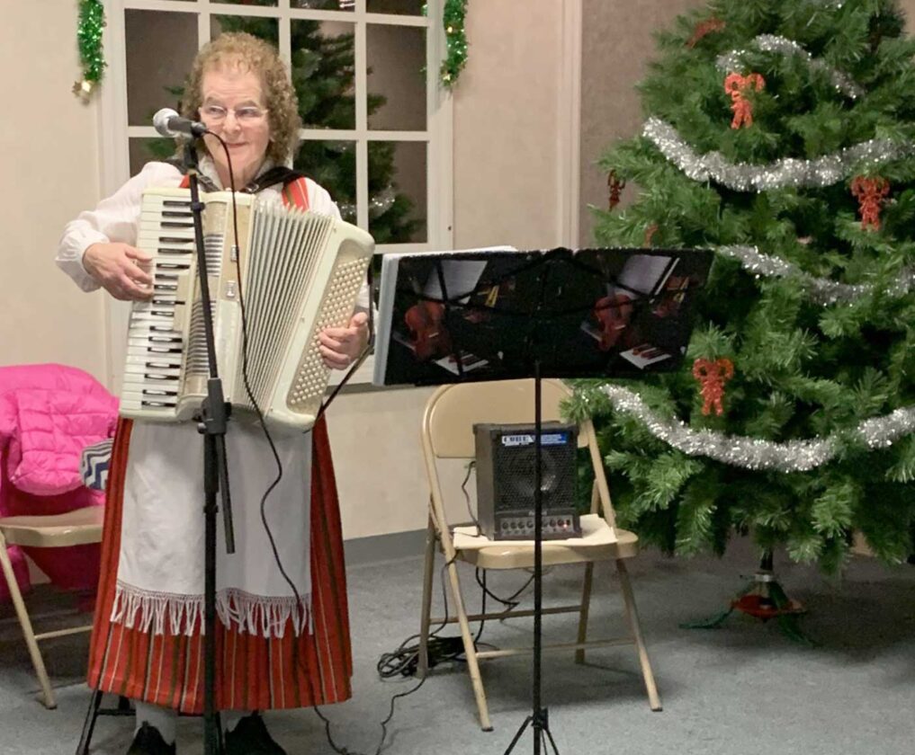Tanja Stanaway performs Finnish music at the Finnish American Raja Ryhma Border Group’s Pikkujoulu “Little Christmas” gathering.