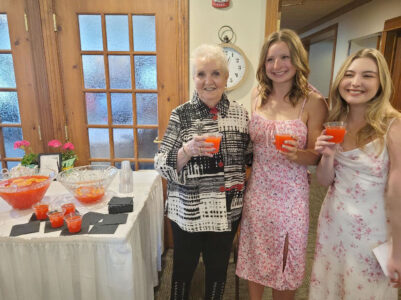 Kingsford and Iron Mountain High School senior girls attended the annual tea hosted by the Iron Mountain/Kingsford Women’s Club. At the punch bowl are GFWV member Jackie Willis and Iron Mountain seniors Bella Pickett and Taylor Koski.