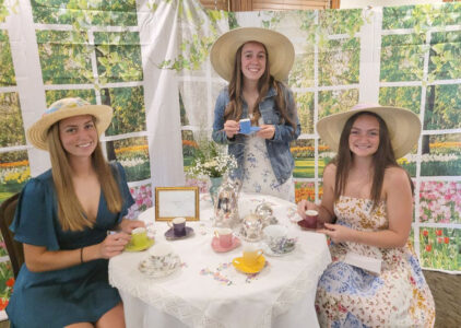 Kingsford and Iron Mountain High School senior girls attended the annual tea hosted by the Iron Mountain/Kingsford Women’s Club. From left are Kingsford seniors — from left are Libby Vross, Audrey Veale and Aubrey Phillips, enjoying the photo booth.