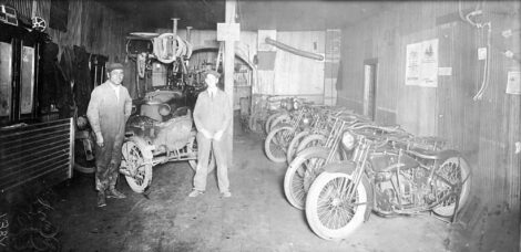 Operated by Williams Rhodes, it sold Indian brand motorcycles and repaired cycles, bicycles and later automobiles. In the first photo from 1927 are Rhodes, left, Pat Trepanier, center, and James Martin, right.