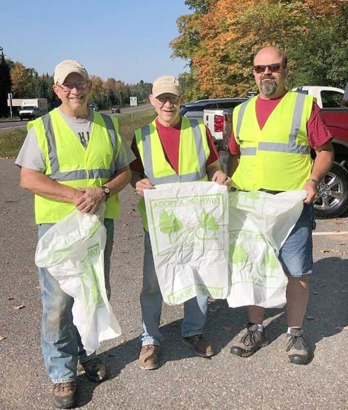 The Iron River Knights of Columbus Council 2300 recently completed their fall annual roadside cleanup. Volunteers started at the intersection of Ice Lake and U.S. 2, and ended at the Bates/Amasa/U.S. 2 intersection. They collected six full bags plus assorted loose items. The Iron County roads beautification project is another display of Knights in action. From left, volunteers included Sir Knights Chairman Tim Peruzzi, Deacon Terry Verville and Grand Knight Mark Stauber. (Submitted photo)
