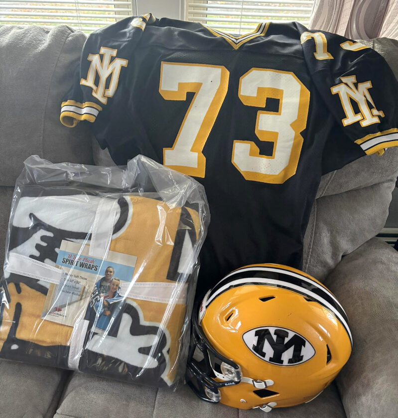 A package of Mountaineer items donated by the Iron Mountain School District and Iron Mountain Athletic Booster Club for the Mike "Bondo" Bond Memorial Scholarship fundraiser on Saturday.