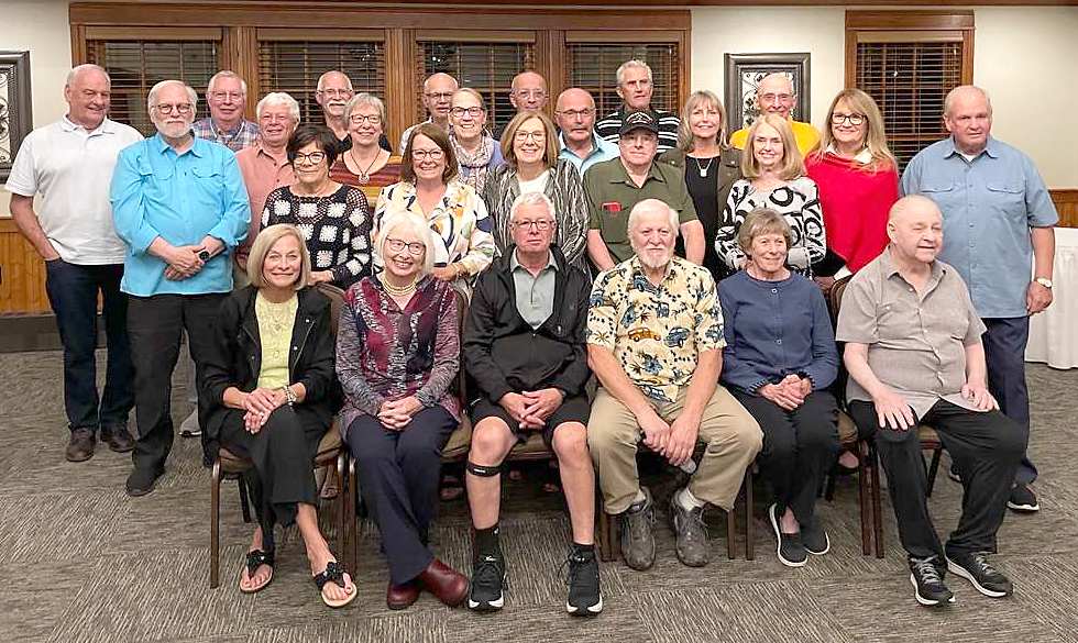 The Iron Mountain High School Class of 1968 recently had a 75th birthday celebration at Pine Grove Country Club in Iron Mountain. From left, in front are Kristi Johnson Celello, Renee Larson Ellis, Peter Lundy, John Fuse, Cathy Pucci Norman and Jim Dale; second row, Bob Brisson, Marsha Porta Torretti, Janet Perla Terwilliger, Sue Podgornik Tinti, Bob Corsi and Monica Miller Mortel; third row, Paul Lundy, Janet DeMuri Fredy, Mary Negro, Ed St. Arnauld, Maureen Mitchell Piper, Christine Fiorani Farley and Dan Formolo; fourth row, Louie Fornetti, Bruce Torretti, Bruce Voelker, Dick Riske, Tom Schorman and Mike Caruso. Not shown are Dave Bath, Joyce Ehgotz Formolo and Alice Kish Goettler.