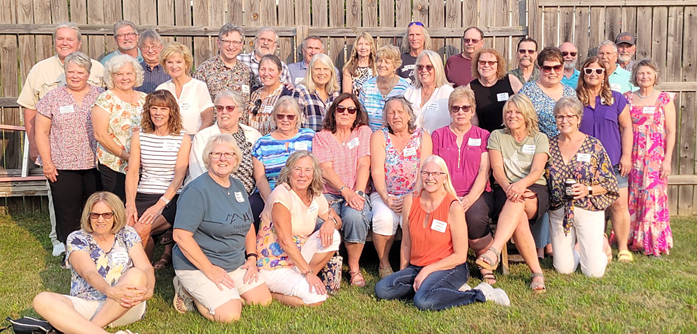 The Norway High School Class of 1975 celebrated its 50th class reunion Aug. 2 at the Long Riders Motorcycle Club in Kingsford. Thirty-six classmates were in attendance to visit and renew old friendships. They came from Arizona, Florida, Indiana, Pennsylvania, Wisconsin and Michigan. They remembered those classmates that have gone on before them with a memorial table. NHS Class of ‘75 helped the Long Riders Club fund their charities this year, which include Salvation Army New Christmas Toys and Suicide Awareness Program of Dickinson County. Members attending — from left, in the front row are Lisa (Marchetti) Becker, Wendy (Johnson) Yoder, Sherry (Zanon) DeRidder and Cheryl (Short) Rochon; second row are Paula (Larsen) Ebli, Judy (Deyaert) Boyd, Pam (Fike) Sundquist, Rosemary Cologna, Mary Francis (Moraska) Pontbriand, Patti (Janssen) Phillips, Lynda (Robinson) Johnson and Gail (Madson) Cavalieri; third row are Cheryl (Gustafson) Stephens, Mary Lynn (Pearson) Verley, Mary (McClure) Bojda, Theresa (Zanoni) DeGroot, Debbie (Morin) Nylund, Marcia (Jasonowicz) Peterson, Janet (Erickson) O’Brien, Jane (Flink) Carter, Marge (Coombs) Johnson, Mary Jean (Opolka) Larson and Kristine (Danielson) Olender; and in back are Arnie Larsen, David Vivio, Donald Rasmussen, Michael DeGroot, Steve Tinti, Jim Haferkorn, Debbie (Skoglund) White, Tom Hinds, Mike Phillips, Tom Bedard, Michael Bal, Patrick DeRidder and Rodney Cayemberg.
