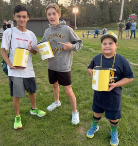 - Norway High School Leo Club’s Jon Kalle, Jack DeDecker and Lucas Doney with cans for collecting donations. (Submitted photo)