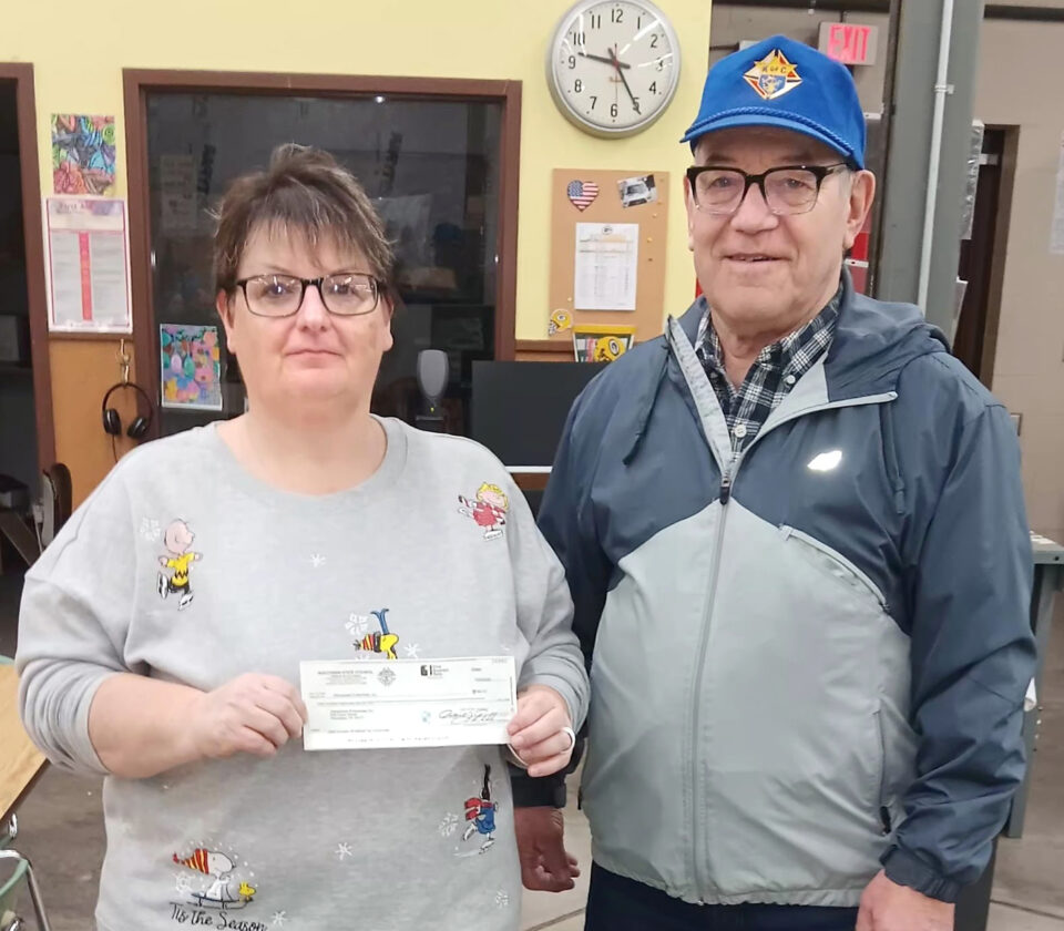 Knights of Columbus Council 2847 of Niagara, Wis., recently made a donation to Wausaukee Enterprises. Knight Larry Moureau presented the check for $982 to Kelly Laun of Wausaukee Enterprises. The money was raised during the Knights of Columbus annual Tootsie Roll Drive. The Tootsie Roll program provides for health care, learning and quality of life opportunities for children, teens and adults with disabilities. Grants are offered primarily to public and private agencies that are qualified not-for-profit organizations focusing on improving the quality of life and providing health care and related services benefiting those with disabilities.