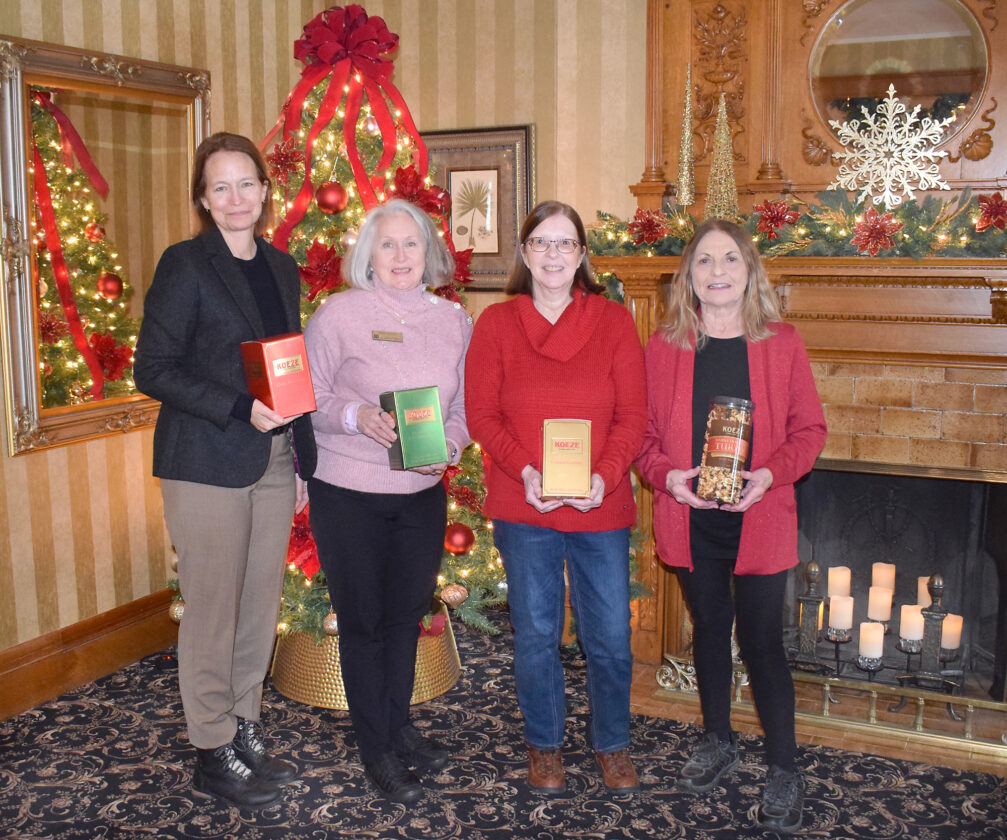 The Iron Mountain-Kingsford Zonta Club is selling Koeze products for its annual holiday season fundraiser now through the rest of December. A variety of gourmet nuts and popcorn are available for purchase at Luv U More Bridal (formerly The Ultimate Bride), Danielson’s Greenhouse in Norway and Lydia’s by Crock and Rocker at 108 E. B St. in Iron Mountain. Orders can also be placed by calling Dianne Gauthier at 906-396-6366. Proceeds go to benefit charities sponsored by the Zonta Club. From left are Zonta members Susan Smith, president; Debb Hoseit; Patt Roginski, treasurer; and Toni Lori. Not shown are committee members Dianne Gauthier, head nut; and Michaela Gagnon. (Terri Castelaz/Daily News photo)