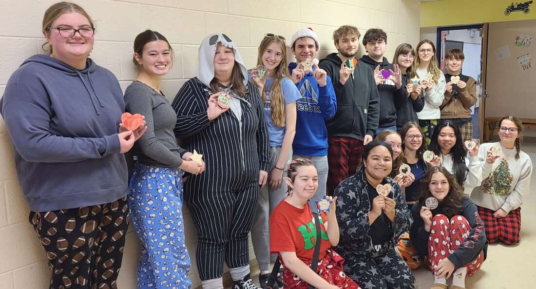 Colleen Distroll's AP Literature class at Kingsford High School celebrated Merry Lit-mas by decorating ornaments using literature-based themes. Works and authors represented include "Catcher in the Rye," "Hamlet," "The Hunger Games," "Harry Potter," "Sophocles," "Edgar Allen Poe" and many more. From left, in front are A.J. Martin, Bella Wery, Arabelle Poll, Olivia Westcott, Sophia Zhao, McKenzie Lancour, and Chloe Roell (lower front); in back are Christina Fraker, Ingrid Holt, Danielle Lucas, Mylee Tusa, John Branam, Gavin Milliron, Haden Bjorkman, Anja Bradley, Samantha Keenan and Ellie Drum.
