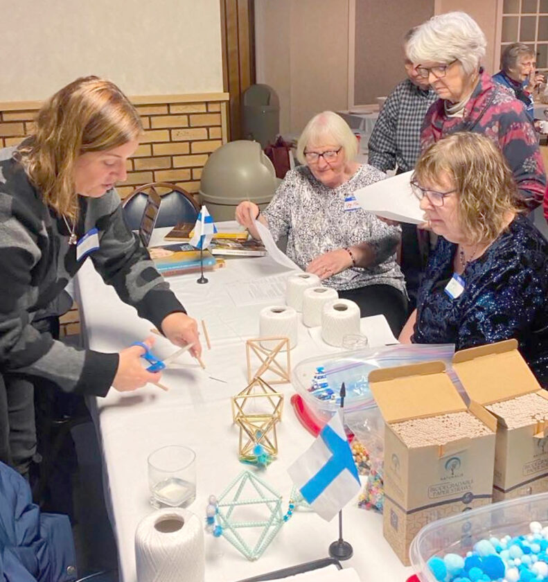 - Florence County High School art instructor Kelli Ellis, left, teaches Joy Nasi, Jan Collins and Sally Karttunen the art of the Finnish craft at the local Raja Ryhma organization’s Pikkujoulu celebration. Himmeli making is enjoyed by Finns of all ages and can vary in size from as small as the palm of your hand to those that can be suspended from the ceiling in a home or building. (Submitted photo)