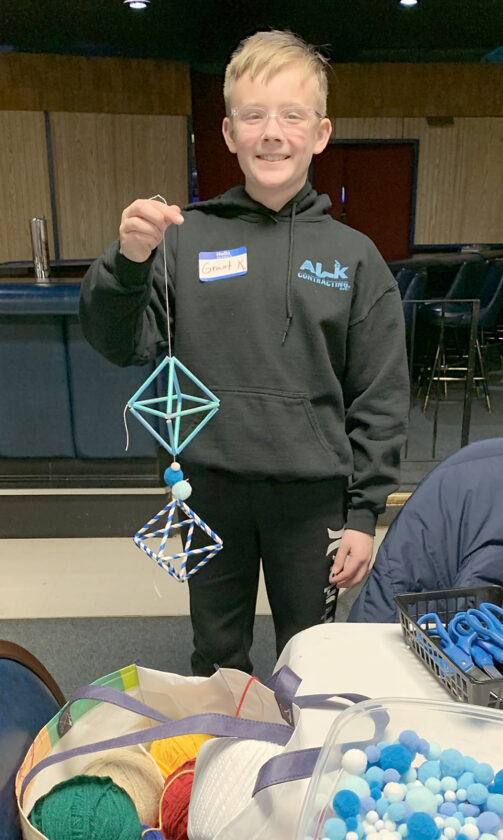 - Grant Kemppainen, 12, of Menominee, great-grandson of Iris Machus of Iron Mountain, shows off his finished Himmeli at the local Raja Ryhma organization’s Pikkujoulu celebration. (Submitted photo)