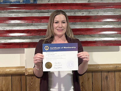 The Goodman-Armstrong Creek Lions Club inducted two new members at its recent meeting. Recognized were Kim Wille, sponsored by Lion Pete Osterberg, and Amanda Fleischman, sponsored by Lion Phyl Barribeau.