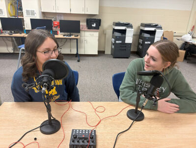 - Kendal Burkland and Emilee Temrowski do a podcast in class.