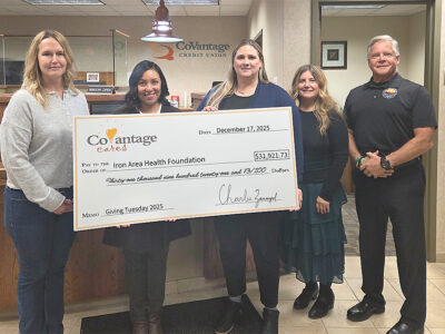 Representatives from Iron Area Health Foundation and members of the CoVantage team are pictured holding a check for $32,000, raised through the CoVantage Cares Giving Tuesday fundraising campaign. Submitted photo