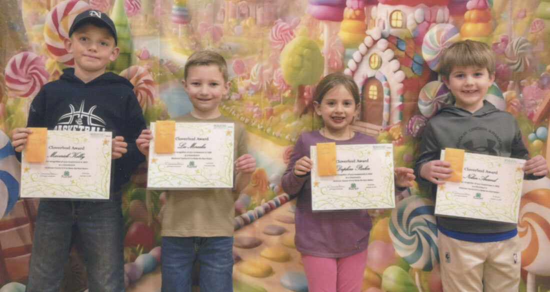 - Cloverbuds presented with awards at the recent Dickinson County 4-H Club banquet were, from left, Maverick Kelly, Leo Moraska, Daphne Parker and Nolan Arcand. Not shown was Lance Cayemberg. (Submitted photo)