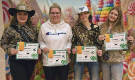 Seniors awards at the Dickinson County 4-H banquet went to, from left, Caitlin Parker, Victoria Cooper, Emma Wright and Kylie Wright. (Submitted photo)