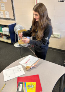 Sara Tregillis’ and Scott Kleiman’s eighth grade classes at Kingsford Middle School recent conducted bungee jumps using a Barbie doll and rubber bands.