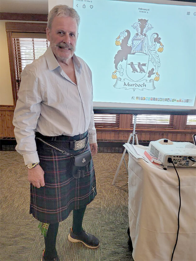 Andrew Murdoch was the guest speaker at the Iron Mountain-Kingsford General Federation of Women’s Clubs March meeting. Murdoch, who was born in Northern Ireland, gave a presentation about Ireland and Scotland. He retired as a major after 20 years in the British Army. His father was the estate manager for a 15,000-acre estate of a duke and duchess. He told of his time as chief of staff at the Edinburgh Castle and members of the royal family that he has met. (Submitted photo)