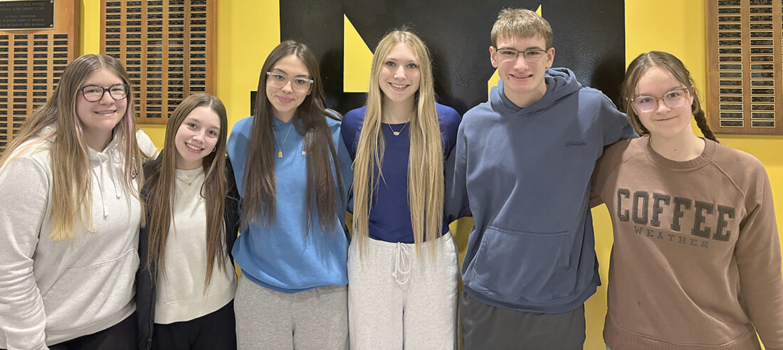 Six Iron Mountain High School sophomores have been selected to attend MYLead — the Michigan Youth Leadership Conference — this summer. From left are Calleigh Galeazzi, Olivia Geneva-Moore, Cadence Lucas, Monroe Vedin, Bryce Johnson and Signe Trindal.