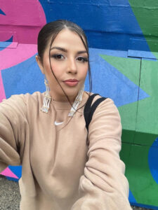 Journey Brotherton is an indigenous fashion designer and a full-time seamstress. She creates contemporary traditional art and clothing. She also creates traditional-style regalia including moccasins, ribbon skirts, shirts, jingle dresses, and bandoliers.