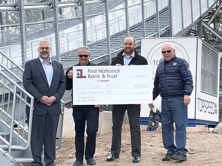 “First National Bank & Trust recognizes the importance of the annual ski jumping event and the possibilities that exist for year-round tourism dollar generation from the facility and how that could impact the many businesses in the region,” said Nick Blagec, Kiwanis Ski Club president. “The Kiwanis Ski Club is grateful for the support from First National Bank & Trust in the past and the support for this campaign now and into the future.”