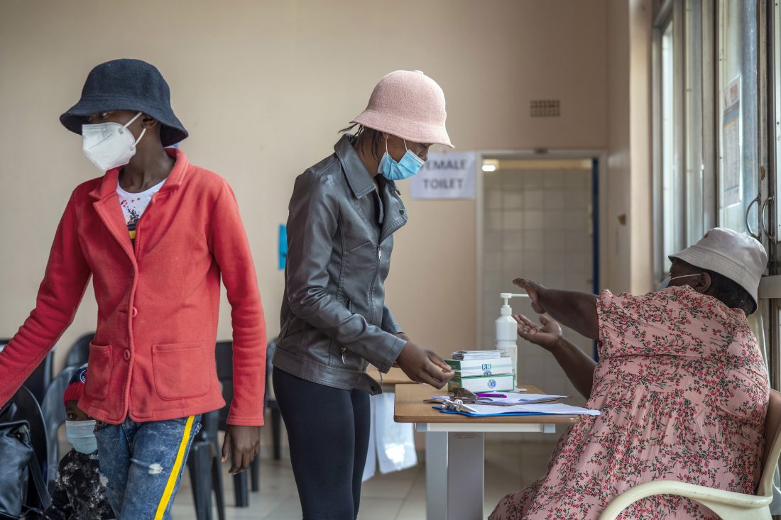 People register for COVID-19 vaccination at Soweto's Baragwanath hospital, South Africa, Monday Dec. 13, 2021. South Africa's 7-day rolling average of daily new COVID-19 cases has risen over the past two weeks from 7.60 new cases per 100,000 people on Nov. 28 to 32.71 new cases per 100,000 people on Dec. 12, according to Johns Hopkins University. In general, the new omicron cases have resulted in milder cases, with fewer hospitalizations and less severe cases requiring oxygen or intensive care. (AP Photo/Jerome Delay)