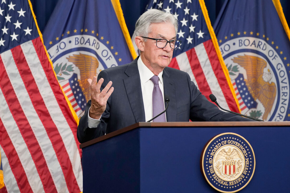 Federal Reserve Chair Jerome Powell speaks at a news conference Wednesday at the Federal Reserve Board Building in Washington. (AP Photo/Jacquelyn Martin)