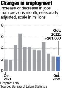 WASHINGTON (AP) — America’s employers kept hiring vigorously in October, adding 261,000 positions, a sign that as Election Day nears, the economy remains a picture of solid job growth and painful inflation.