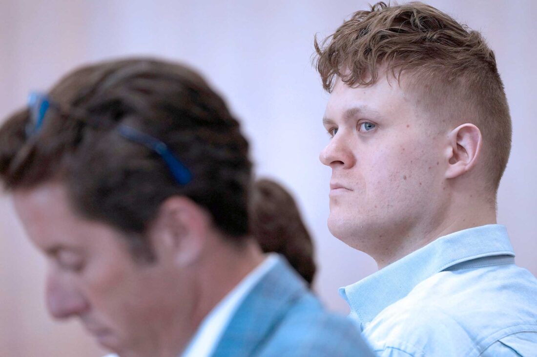 MAXWELL ANDERSON, RIGHT, with his defense attorney Anthony Cotton, left, in Milwaukee County Circuit Court on Thursday in Milwaukee, Wis. (Angela Peterson/Milwaukee Journal-Sentinel via AP, pool)